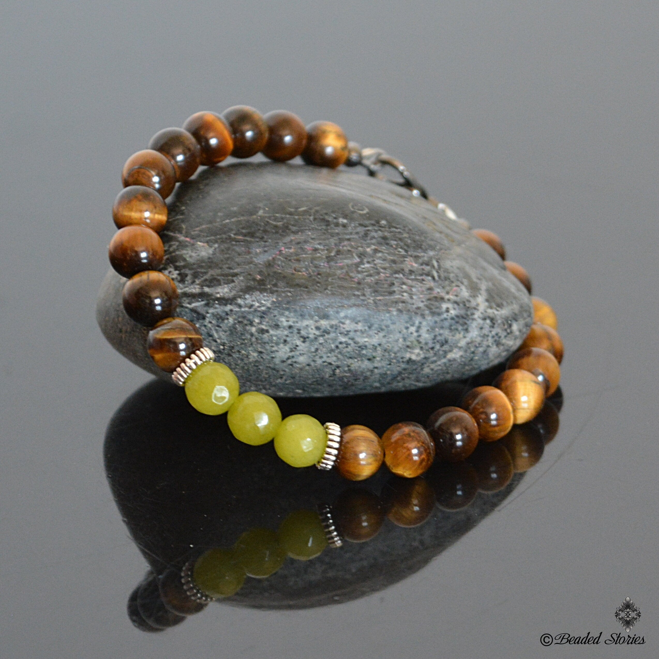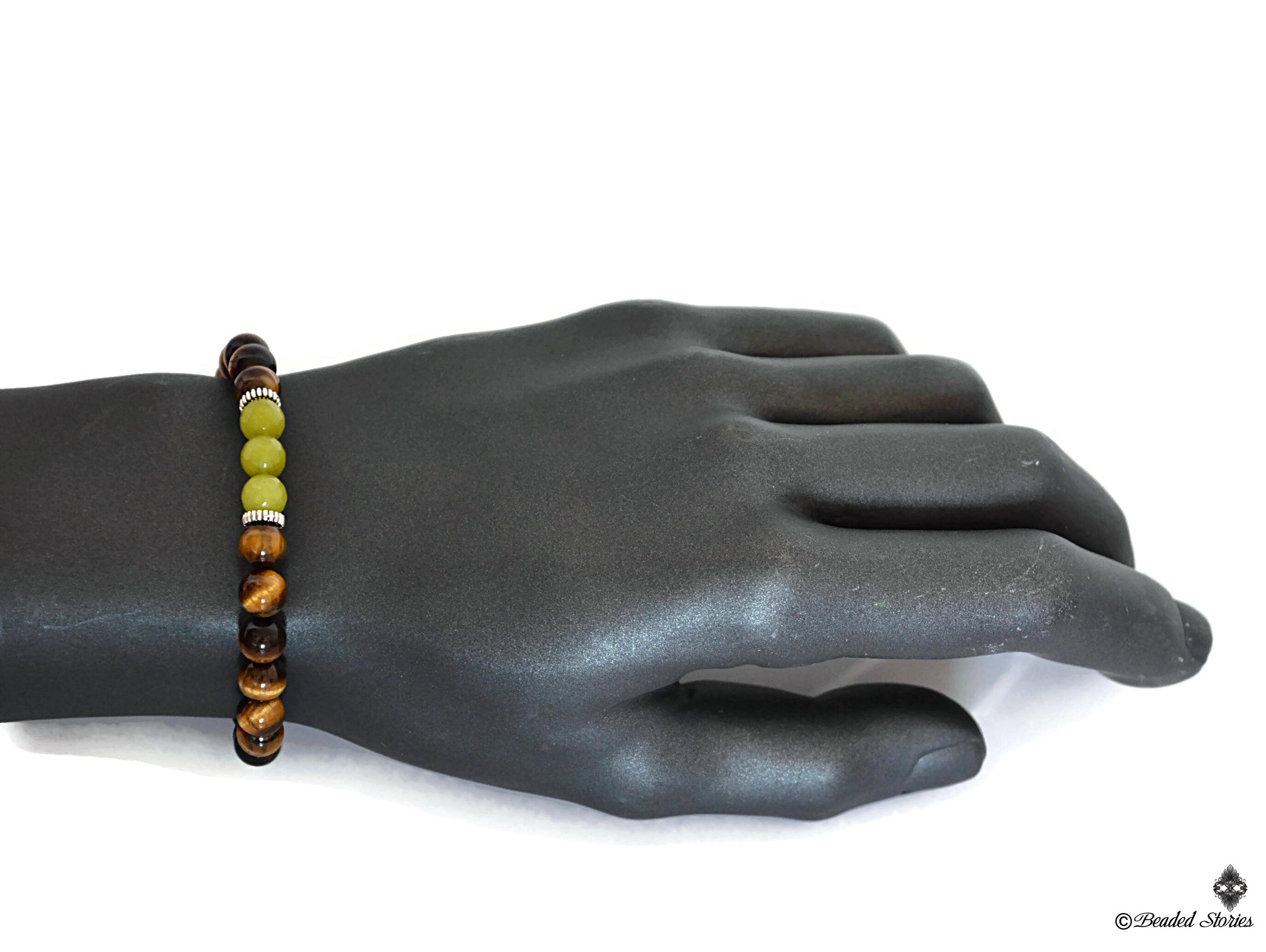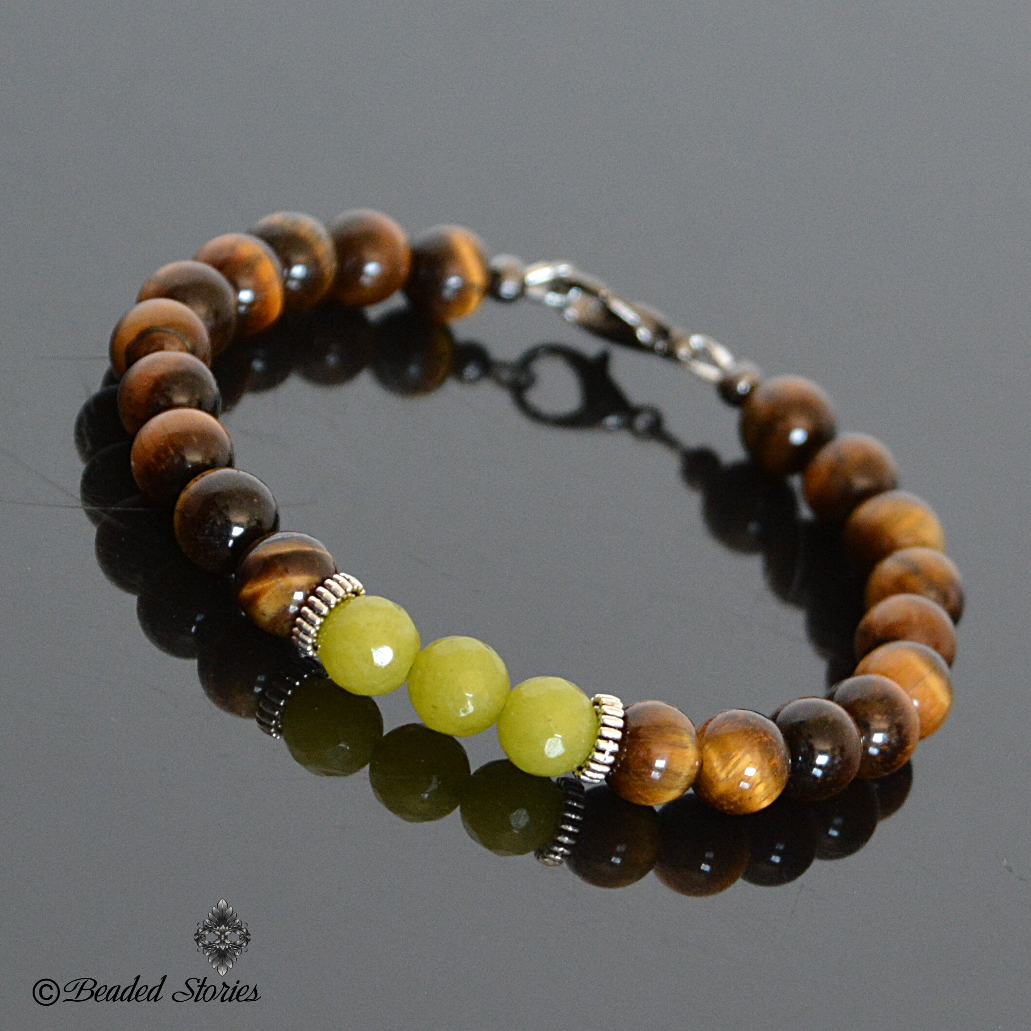 August Birthstone Bracelet, Peridot & Tiger’s Eye Beaded Bracelet for Men