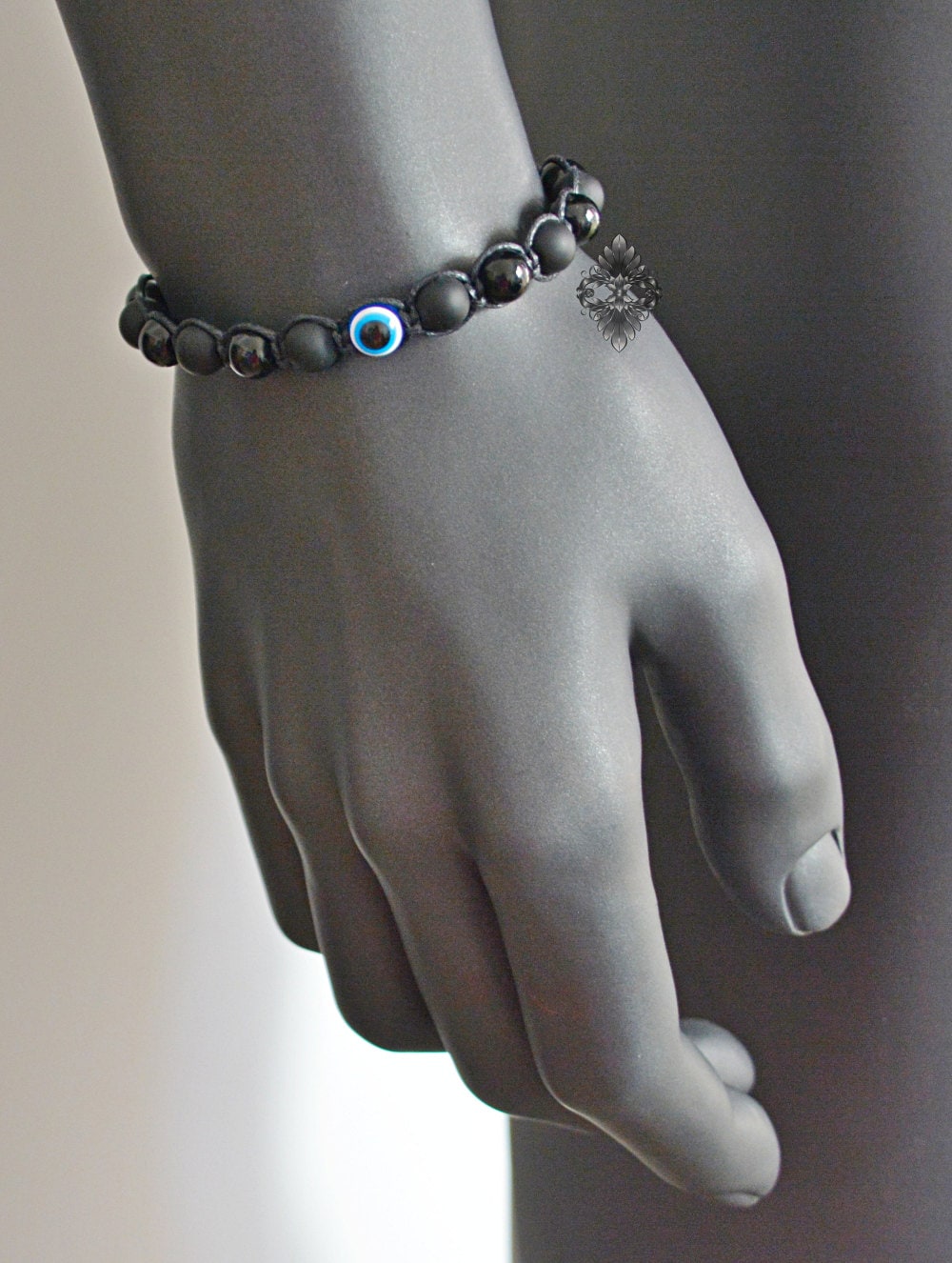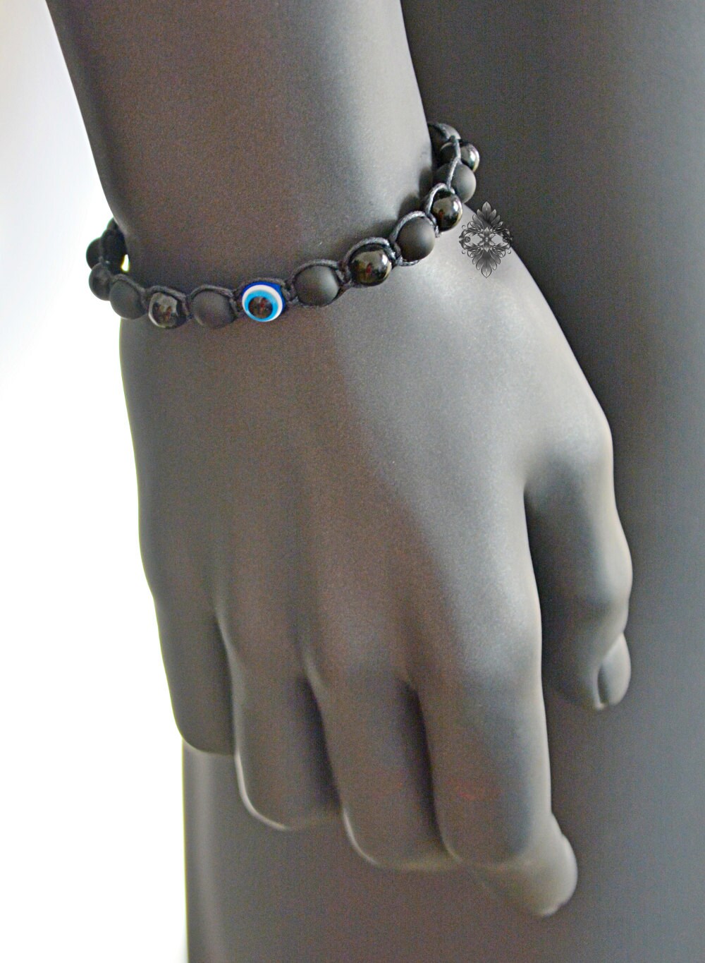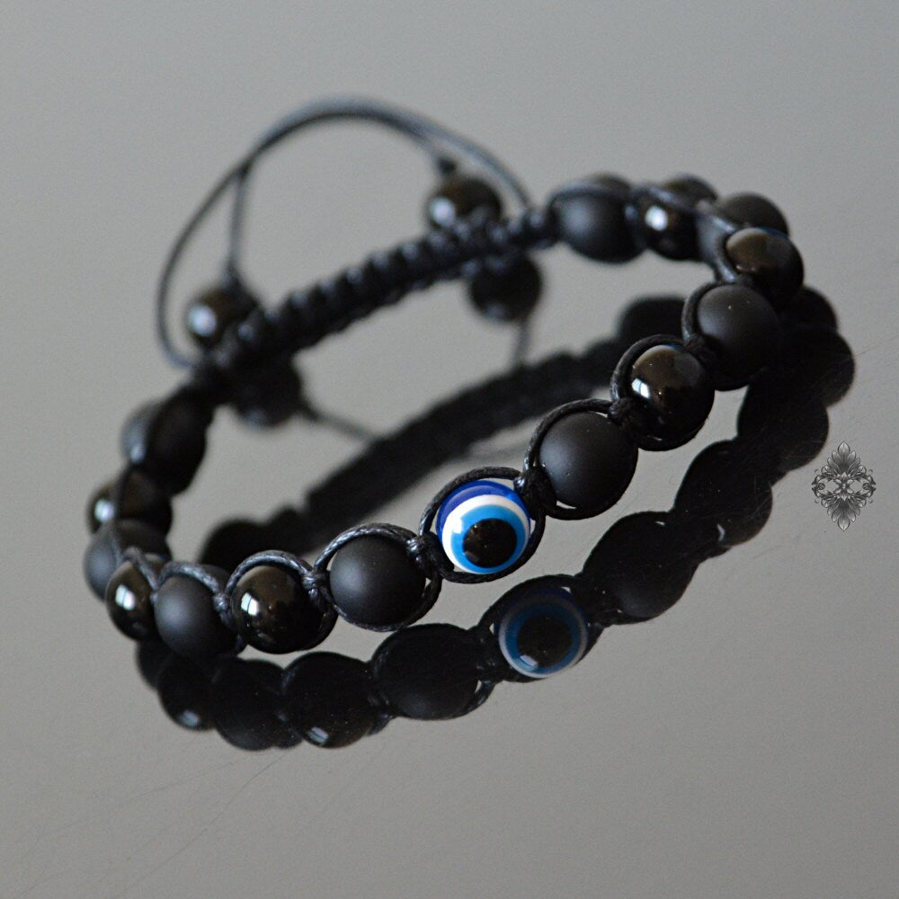 Black Onyx Evil Eye Bracelet, Mens Bracelet, Black Protection Bracelet, Crystal Healing Jewelry, Evil Eye Jewelry