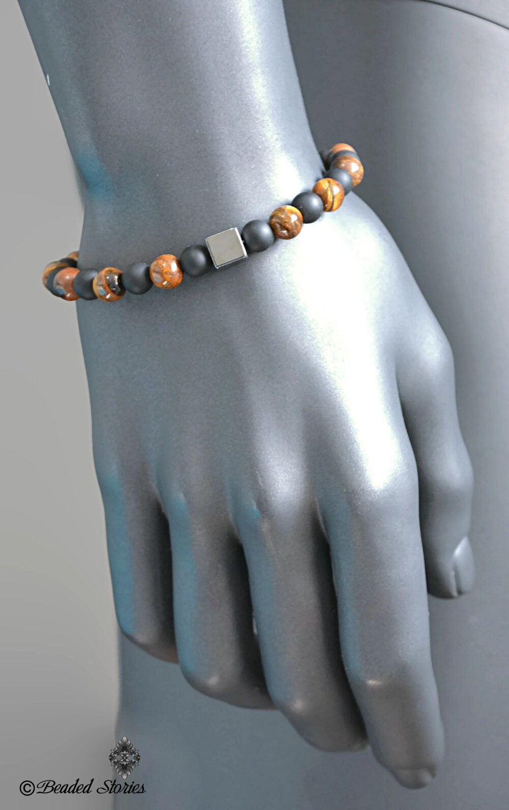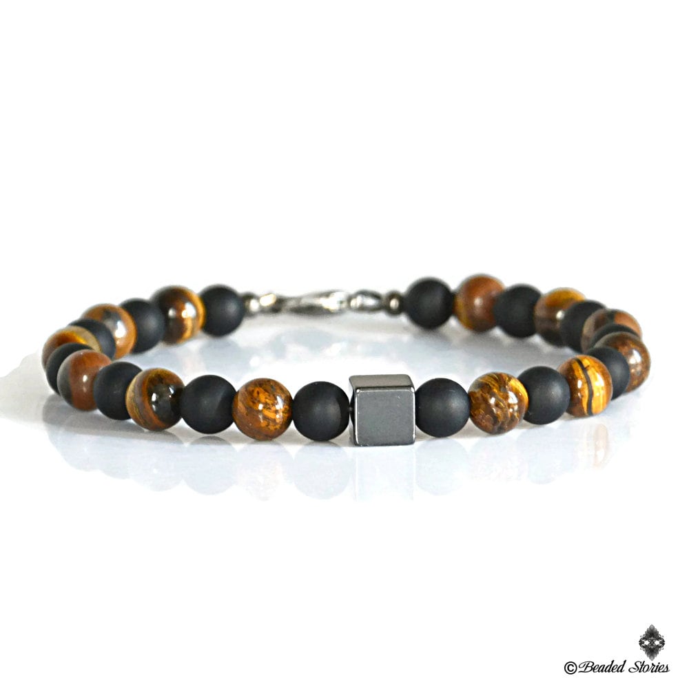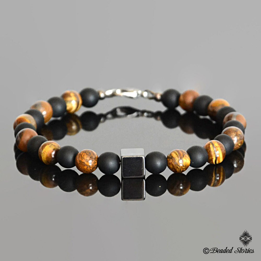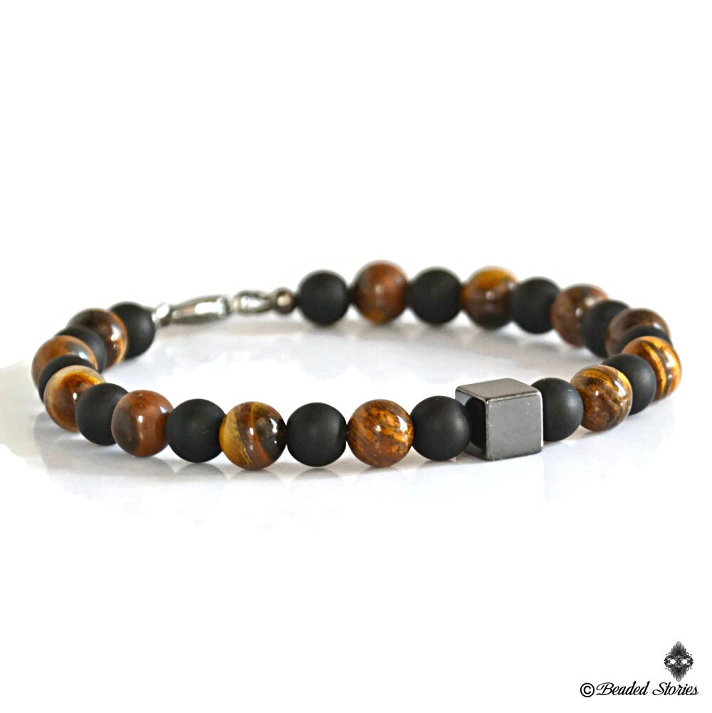 Bead Size: 8mm Tiger’s Eye & Black Onyx, Hematite cubic bead