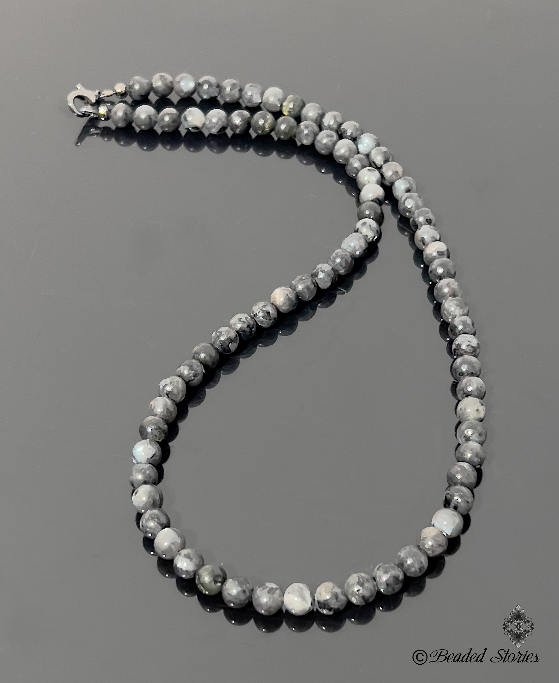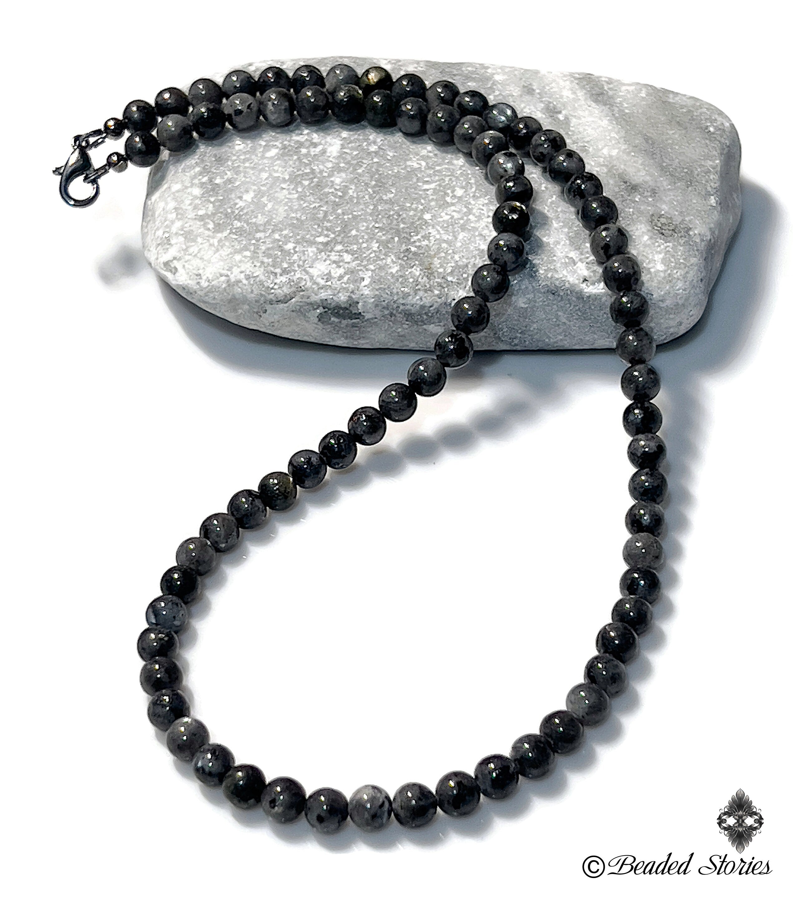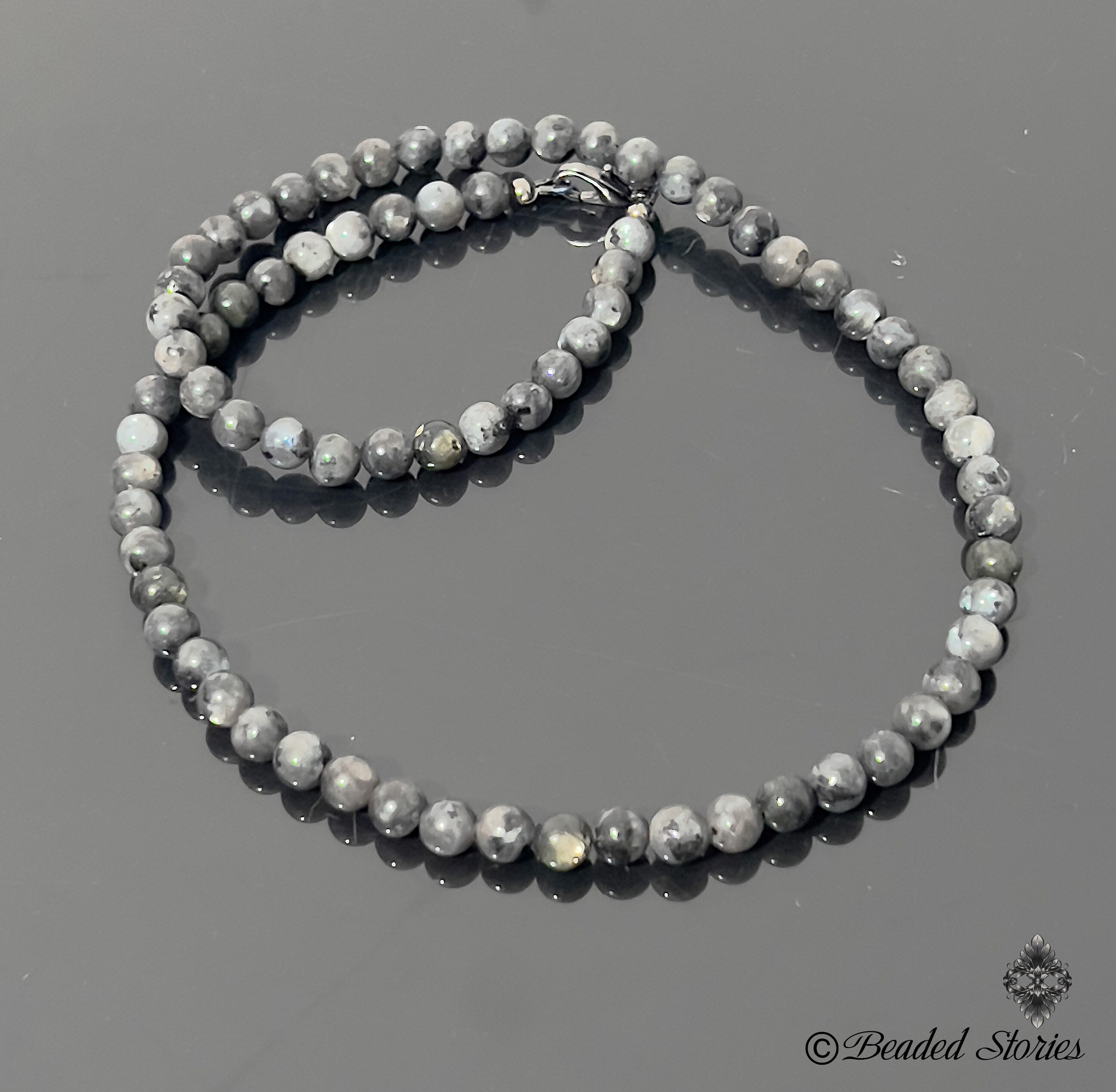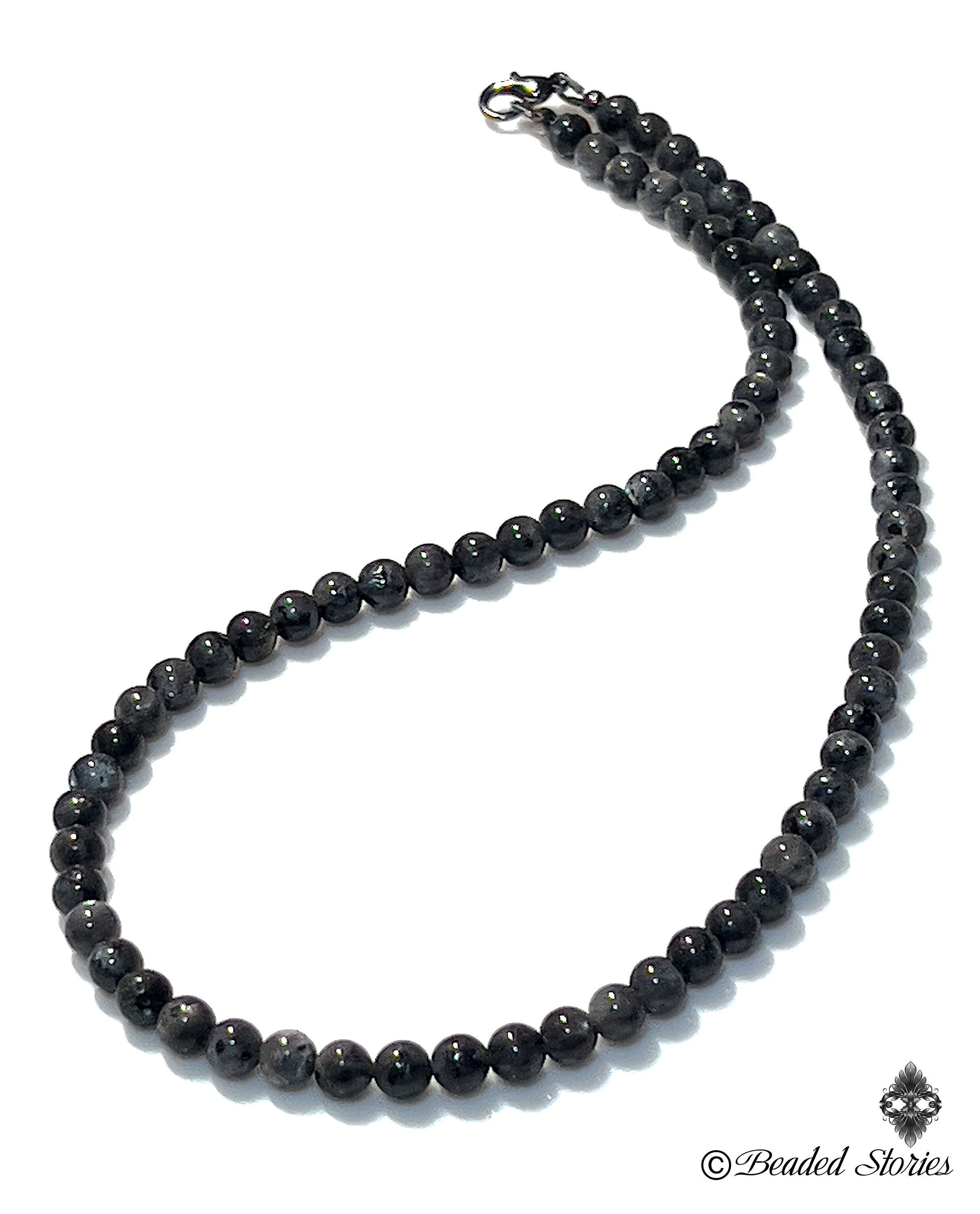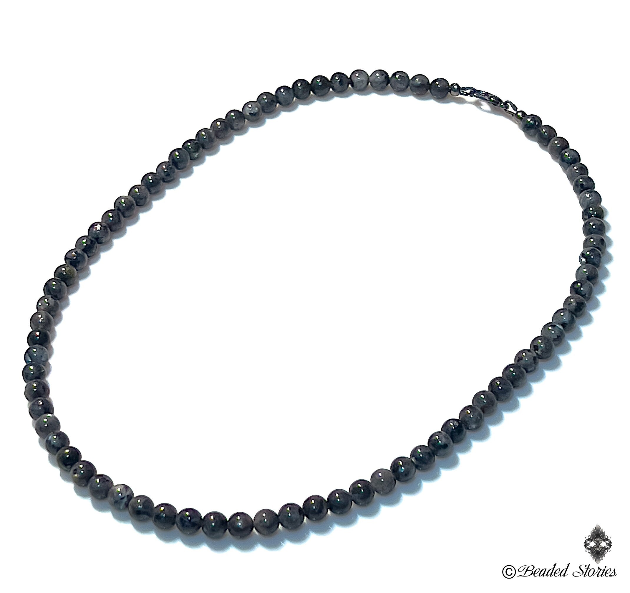 Men’s Labradorite Beaded Choker, 6mm Gray Stone Necklace, Minimalist Protection Jewelry