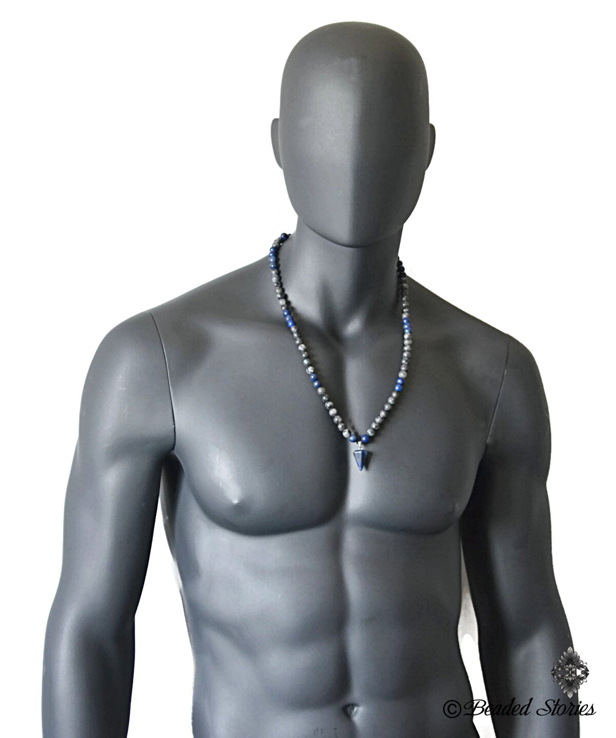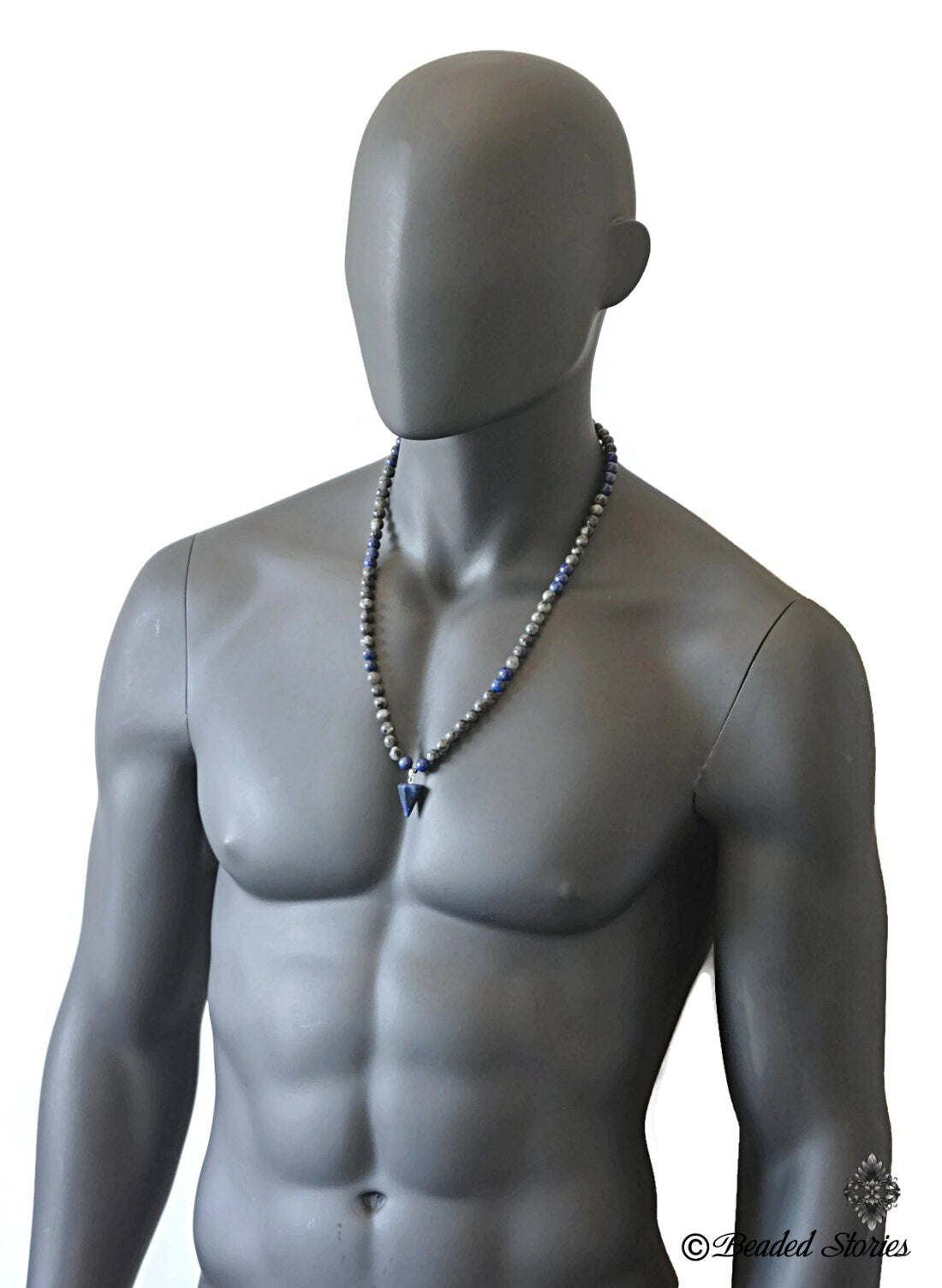 Men's Lapis Lazuli Necklace – Beaded Pendulum Healing Crystal Jewelry – September Birthstone Gift – Handmade Jewelry