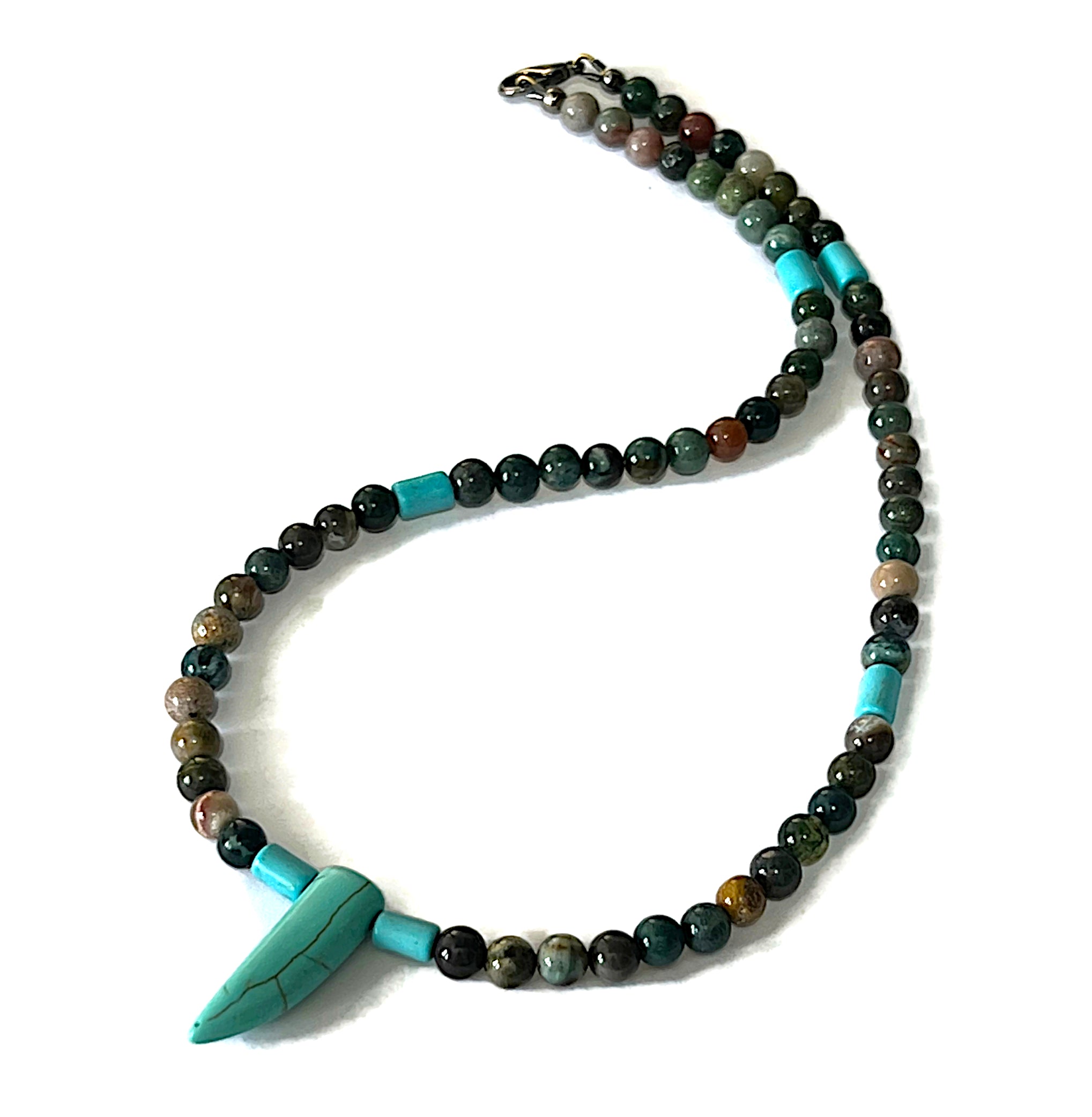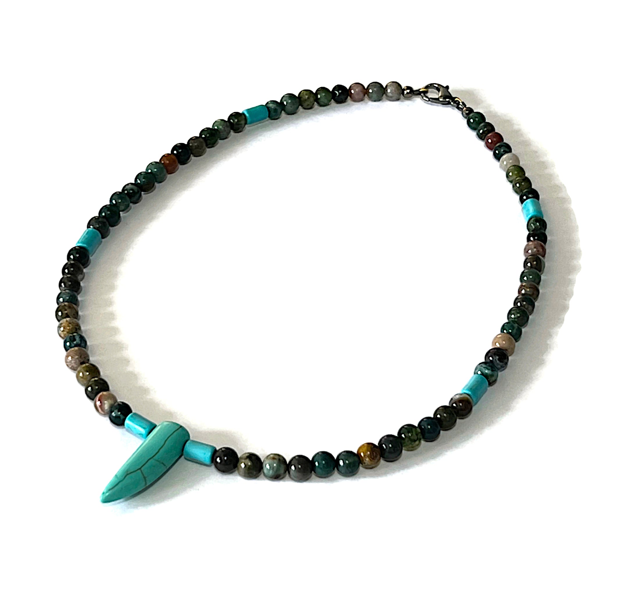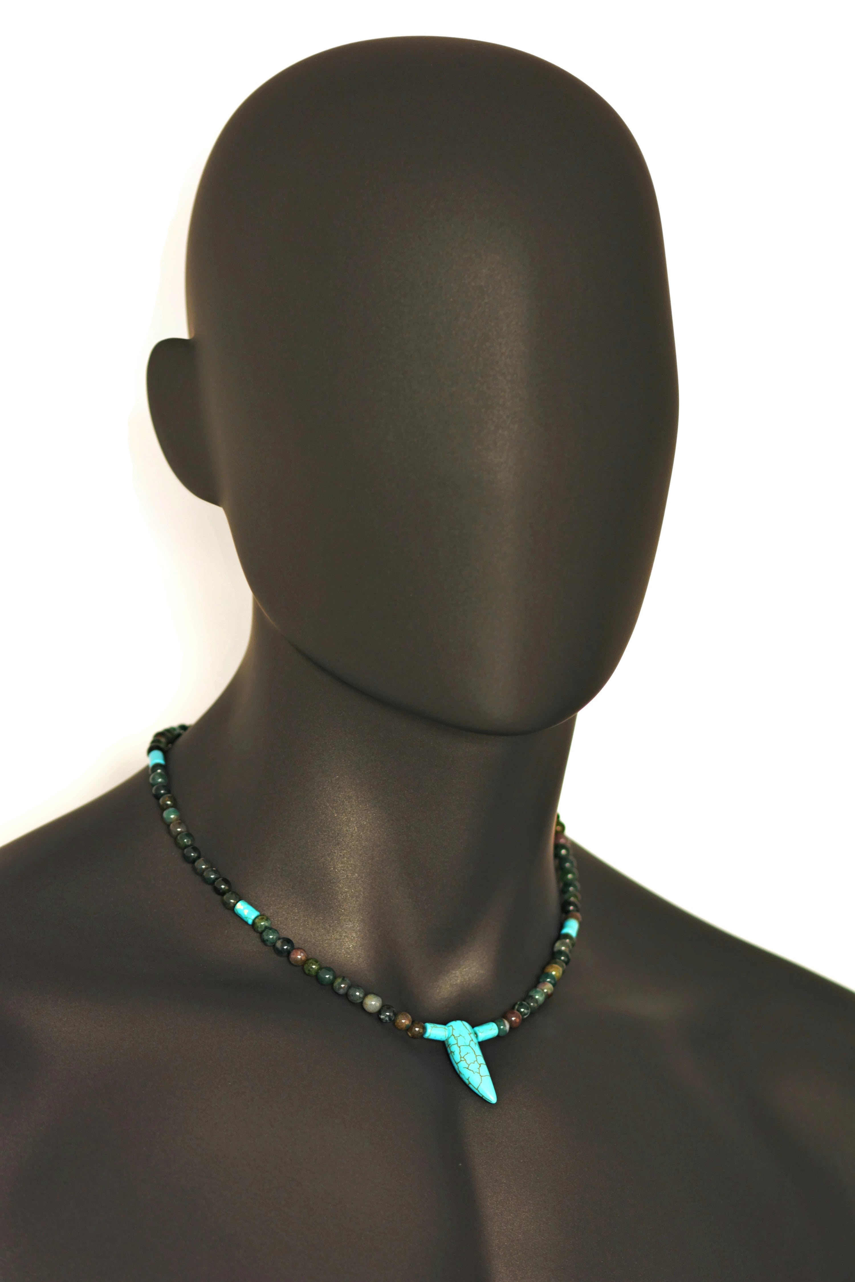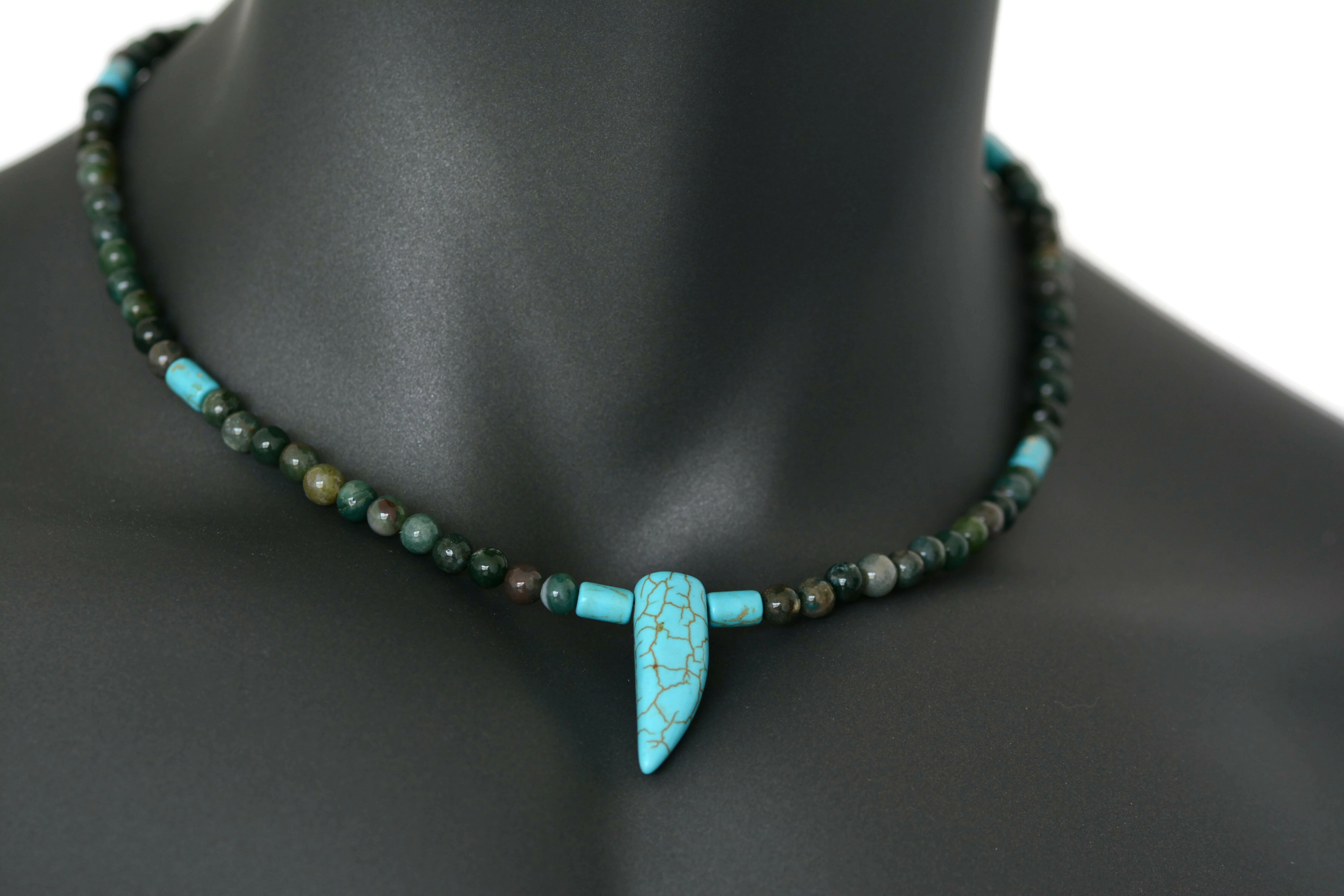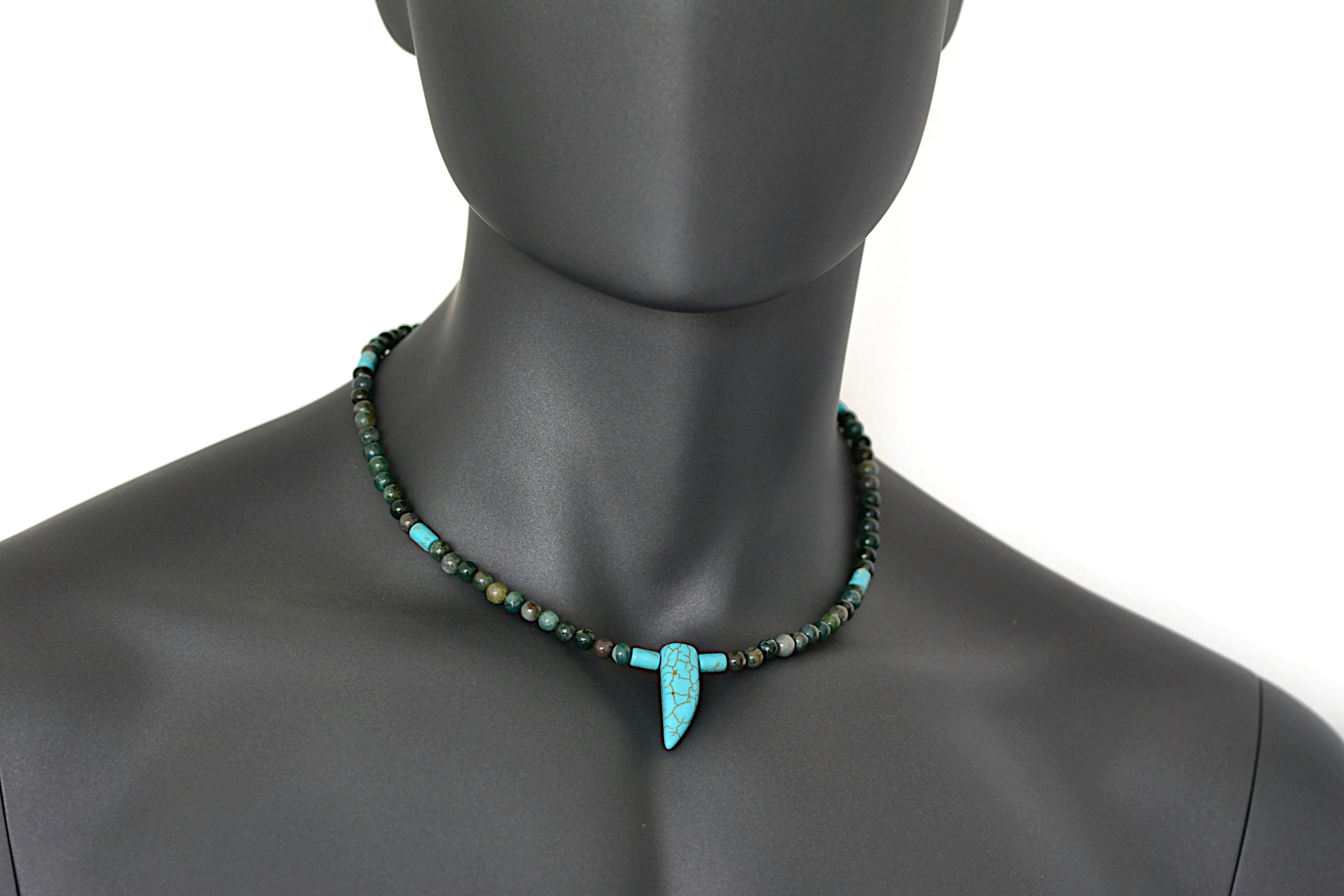 Presenting our meticulously handcrafted Beaded Choker Necklace for Men, featuring a Blue Howlite horn pendant that embodies the essence of strength and resilience while infusing an untamed flair into your everyday wardrobe. Each individual bead is thoughtfully chosen and expertly threaded, ensuring a snug and secure fit that rests comfortably against your neck.
